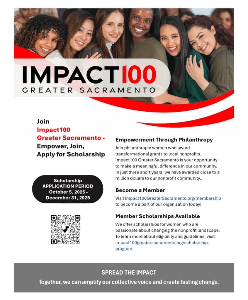 - Scholarships are private and confidential unless the recipient gives Impact100 Greater Sacramento permission to use their name and scholarship status for our marketing.